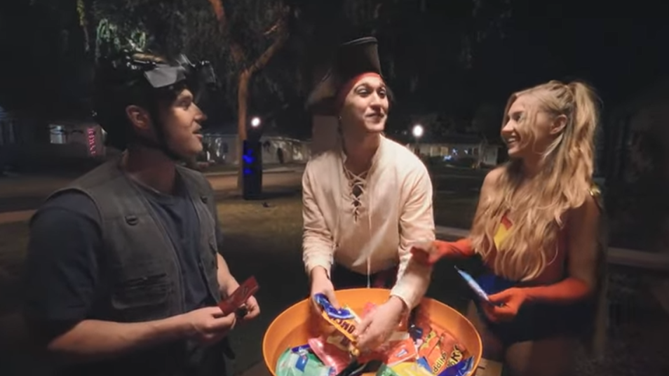 A group of four adults come from a party without candy and decide, since they are already dressed up, to go trick-or-treating. The second house they come to has a giant bowl of candy with a sign stating “take only one.” But, to their surprise, the candy has funny names that they have never heard of, and when they unwrap one, it’s shaped like a penis.